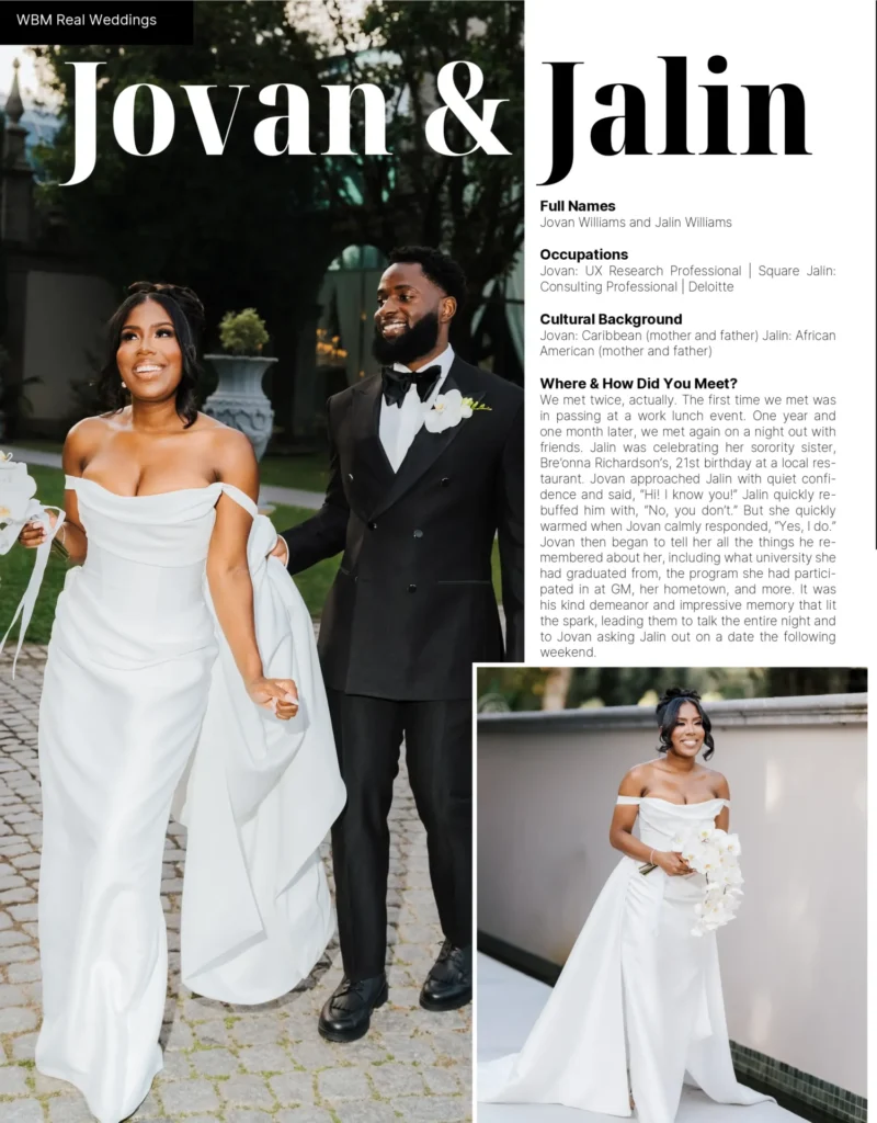 Our WBM fashion team has provided you with various looks straight off the runway that will inspire you the bride and your bridal party. Enter the gentlemen’s quarters with looks that will inspire you from your wedding day, to your honeymoon travels, as well as providing you withe great accessories that will complete your looks. Luxury goods from David Yurman, Cole Haan, Breitling and Rolex. Nothing but the best for you and your beloved. This issue we highlight various beauties from various cultural backgrounds. Join us as we explore The California Coast, Egypt, Costa Rica, Colombia, Sri Lanka, Australia, and the shores of North Carolina.