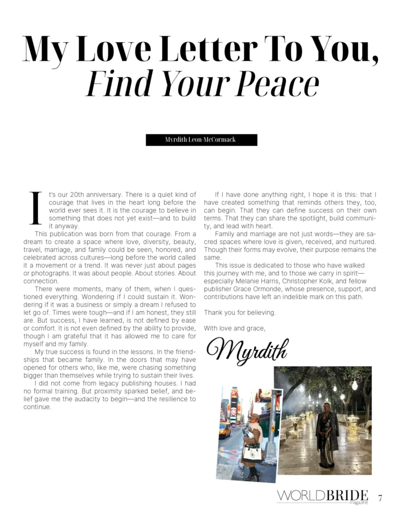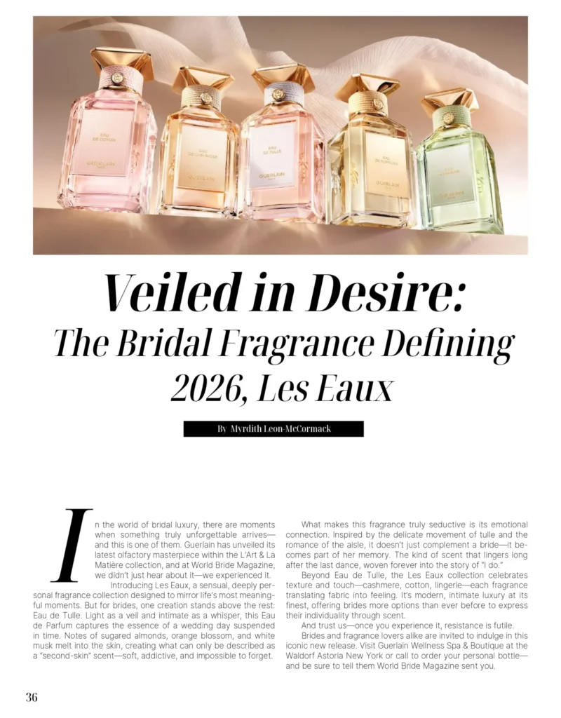 The wedding day is traditionally focused on the bride. At World Bride Magazine, we believe it should involve both parties. Therefore, we are dedicating our top-of-the-year issue to the grooms planning their weddings. Men face countless challenges in our society and are under extreme pressure—which could lead to depression, anxiety, and other health-related problems. We want to let them know it is ok to take time and breathe. We have also explored some great destinations around the world that we want you and your beloved to experience together.