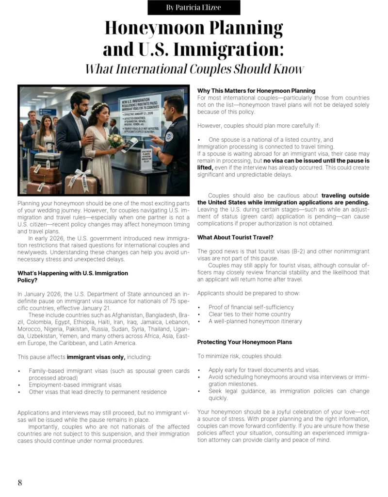 The Real Brides, Real Beauty issue continues in our third year of celebrating actual brides that are planning their own weddings. In this issue, we celebrate the various type of beauties, looks, body shapes, and styles of American Women in fashion and style. We continue with our travels as we discover American in all its glory as we head south. We also explore the rich culture of the rest of the world as we discover more of Europe, Mexico, and the Caribbean.